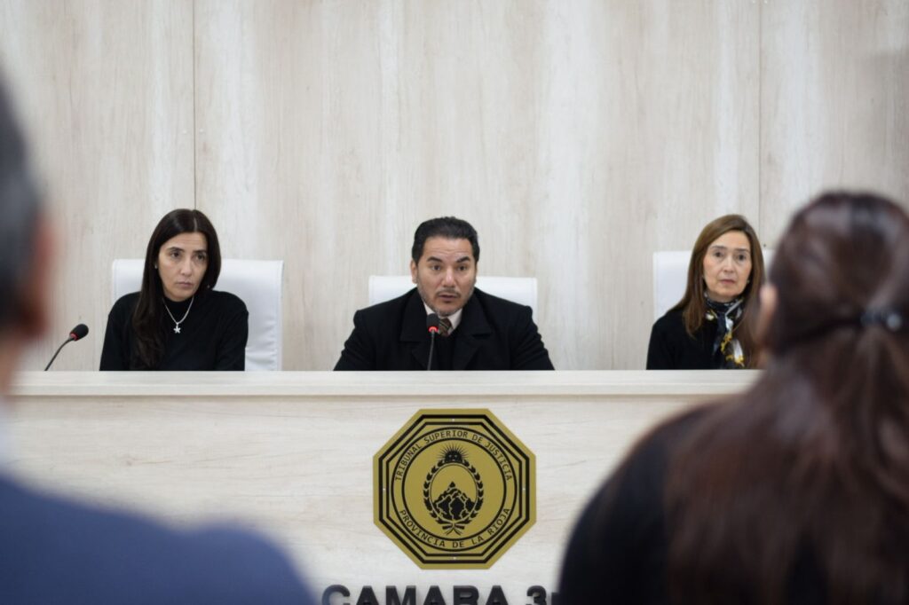 Esta audiencia de alegatos se efectuó en la Sala de la Cámara Tercera en lo Criminal y Correccional de la Primera Circunscripción Judicial; con el Tribunal del Juicio conformado por el juez Gustavo Díaz, como presidente; junto a las juezas vocales Edith Agüero y Sara López Douglas.