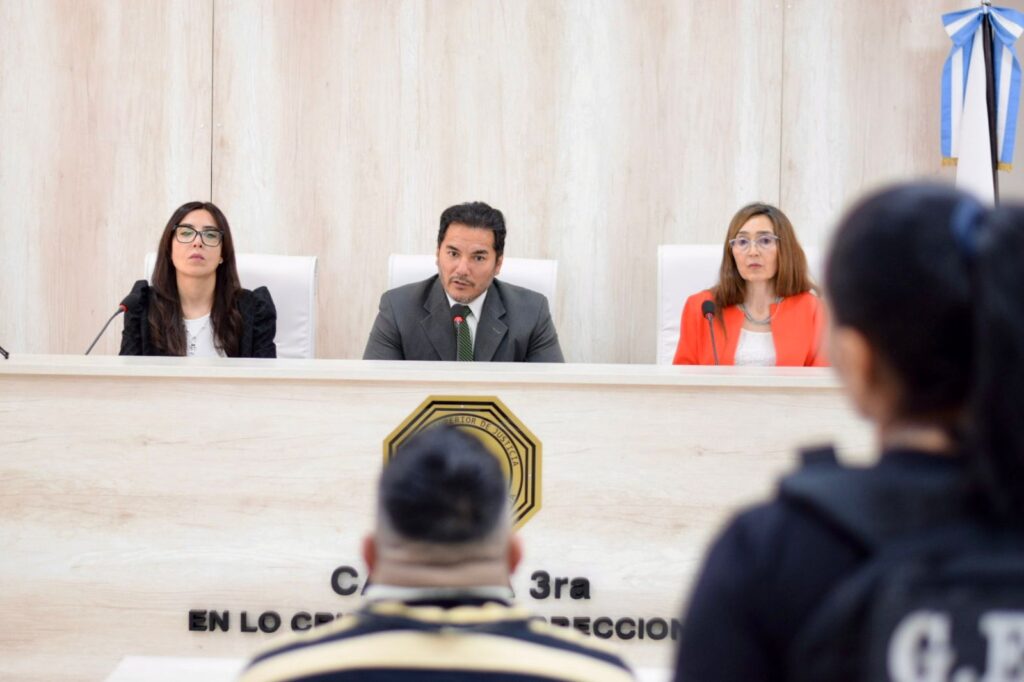 El juicio inició en la Sala de la Cámara Tercera en lo Criminal y Correccional de la Primera Circunscripción Judicial; cuyo Tribunal está conformado por el juez Gustavo Díaz, como presidente; quien estuvo acompañado por las juezas vocales Sara López Douglas y Edith Agüero.